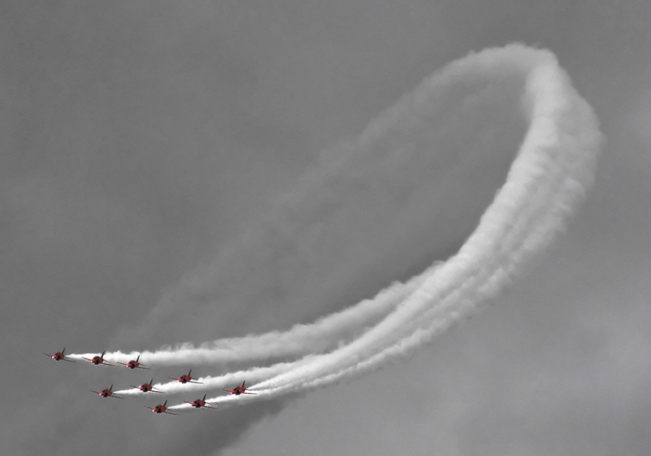 I try to look at aircraft photography as an art form where all the usual photographic elements apply: good composition, effective lead-lines (from clouds, vapour or smoke trails), space for the aircraft to move into, unusual orientations, exciting routines, dramatic skies and cloud patterns. Getting all those elements in place with good technical quality makes it a challenge.
