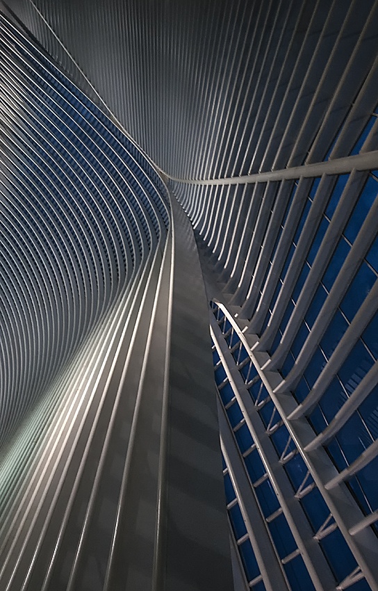 Taken in the Liège Guillemins station (Calatrava architecture) at the 'blue hour'. It all was there, minimal processing needed.